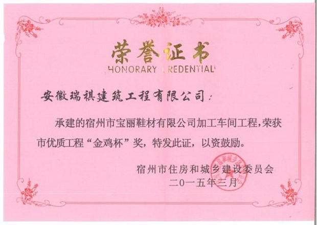 2014年宿州市優(yōu)質(zhì)工程“金雞杯”獎